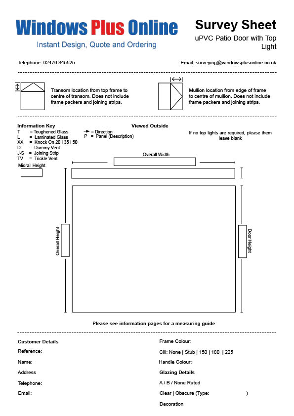 The uPVC Patio Door measuring sheet can be downloaded using the button below.Below you will find an example of what to expect in your download.
