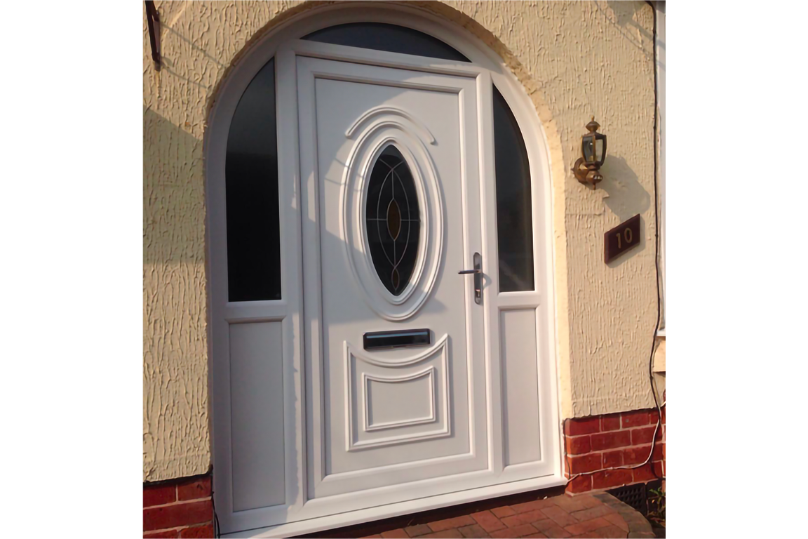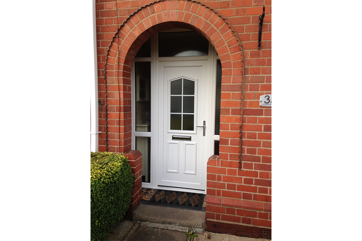 Arch doors are usually required on houses where the brickwork is in the shape of an arch at the top. They usually come with glass above and to the side of the door to give an arch shape. The main door design is chosen by you through the designer. There is a variety of different colours to choose from but are generally white in colour, and slightly different shape options. The shapes include chamfered and sculptured. Chamfered is a style that has a more traditional angled shape, and the sculptured style is one with a more modern curve. The inside of the window beading will match the shape that is chosen for the framework. The main door can have panel, glass or a mixture of both. These are usually found in brick porches where the doors have been moved forward to gain space or create a porch area.